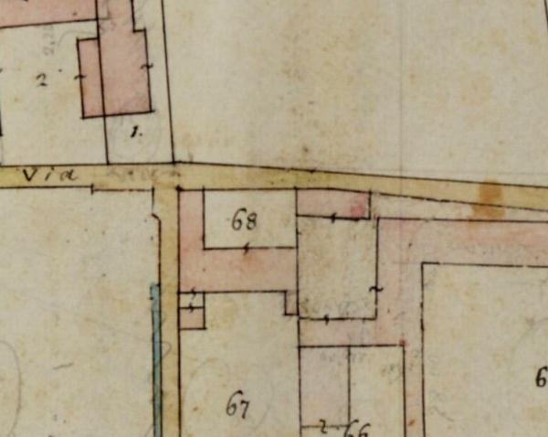 L'attuale villa Stanga insiste su di un lotto che già nel catasto Teresiano del 1723 vedeva la presenza di un analogo corpo di fabbrica a "L", dalle medesime dimensioni. Appare altrettanto evidente, però, come l'attuale disegno dei prospetti faccia riferimento ad un assetto relativamente recente, riconducibile ai lavori effettuati dalla famiglia Stanga ad Azzanello intorno alla metà dell'Ottocento. Dal catasto Teresiano emerge, a ovest della villa, anche la presenza di un altro edificio a corte aperto proprio sulla villa e da essa distanziata da una strada, oggi interrotta dalla recinzione del frutteto ma presente sino alla fine del XIX secolo. Tale edificio è rappresentato ancora nel catasto Lombardo Veneto della metà dell'Ottocento, ma con la corte aperta verso il frutteto. La sua scomparsa nella successiva rilevazione potrebbe essere indice, ed è questa solo un'ipotesi, della avvenuta ristrutturazione della casa padronale da parte degli Stanga con conseguente demolizione di un edificio di scarso interesse, troppo vicino alla villa.